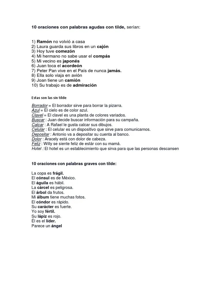 Palabras Graves Con Tilde Y Sin Tilde Ejemplos / 100 Ejemplos Palabras Agudas Celeberrima Com